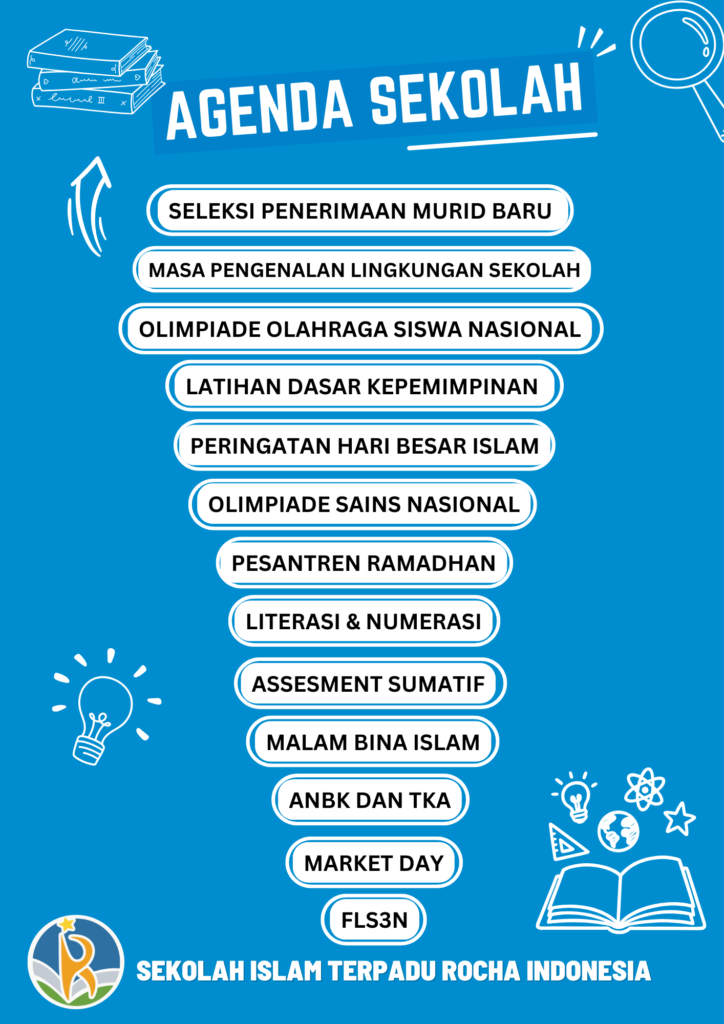 Agenda sekolah berisi rangkaian kegiatan penting yang akan dilaksanakan selama semester ini, mulai dari kegiatan akademik, ekstrakurikuler, lomba, peringatan hari besar, hingga program pembinaan karakter.